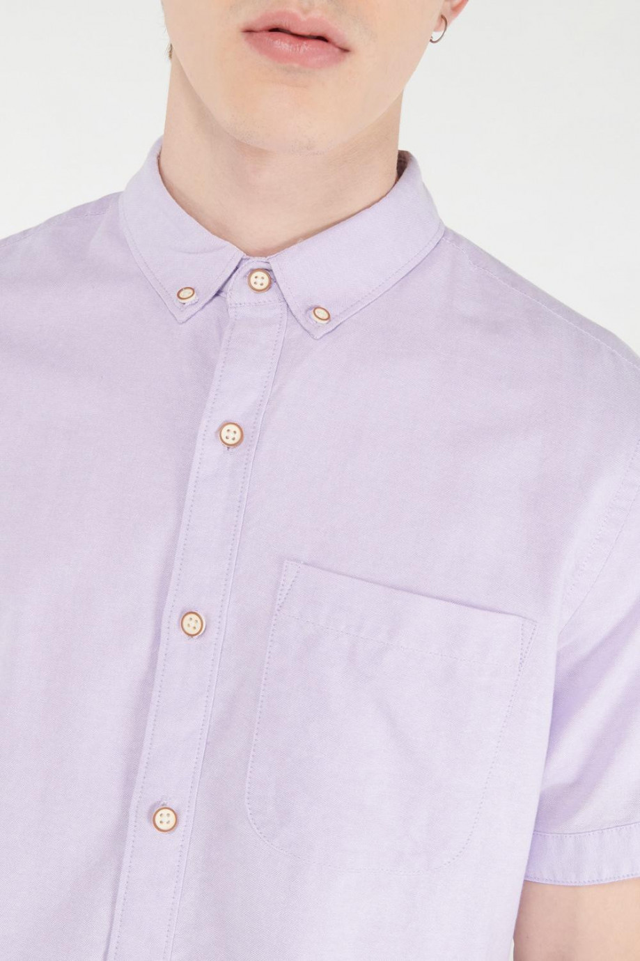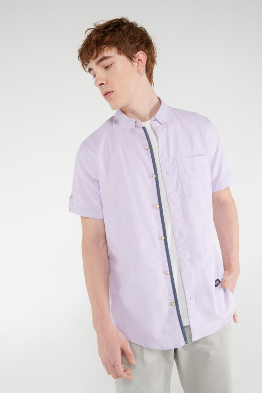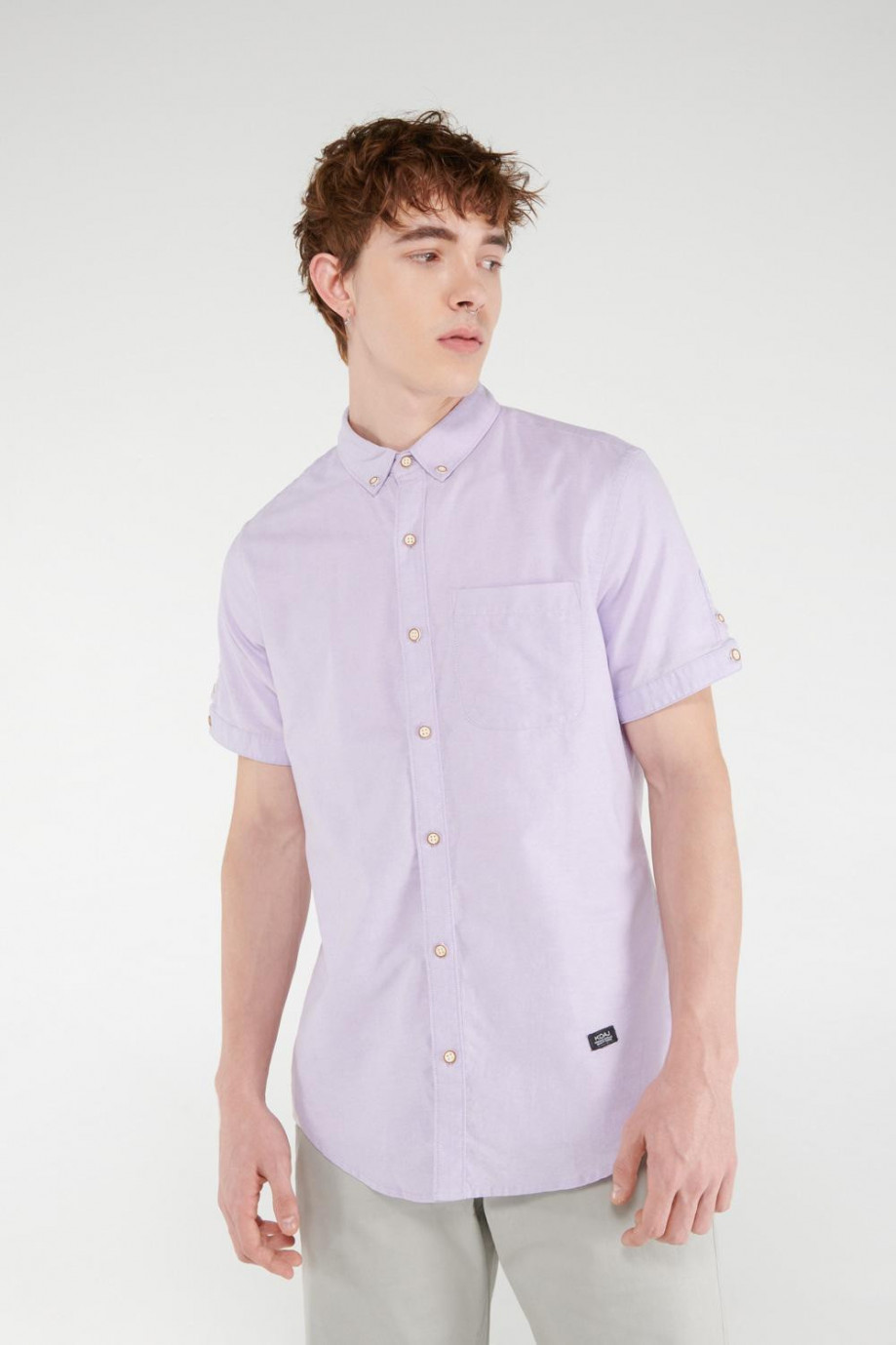 Camisa para hombre, en tela oxford unicolor con bolsillo delantero y marquilla decorativa en frente
