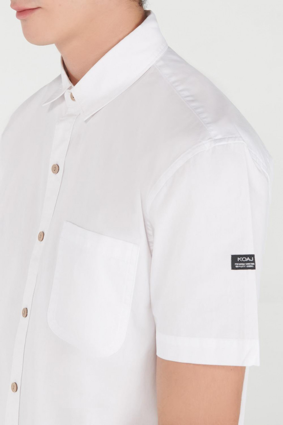 Camisa cuello sport collar con tela unicolor, manga corta con un bolsillo y botonadura en el frente.