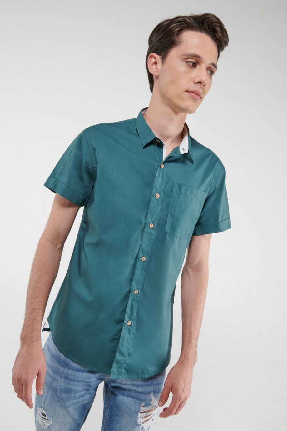 Camisa para hombre, en tela unicolor con bolsillo delantero