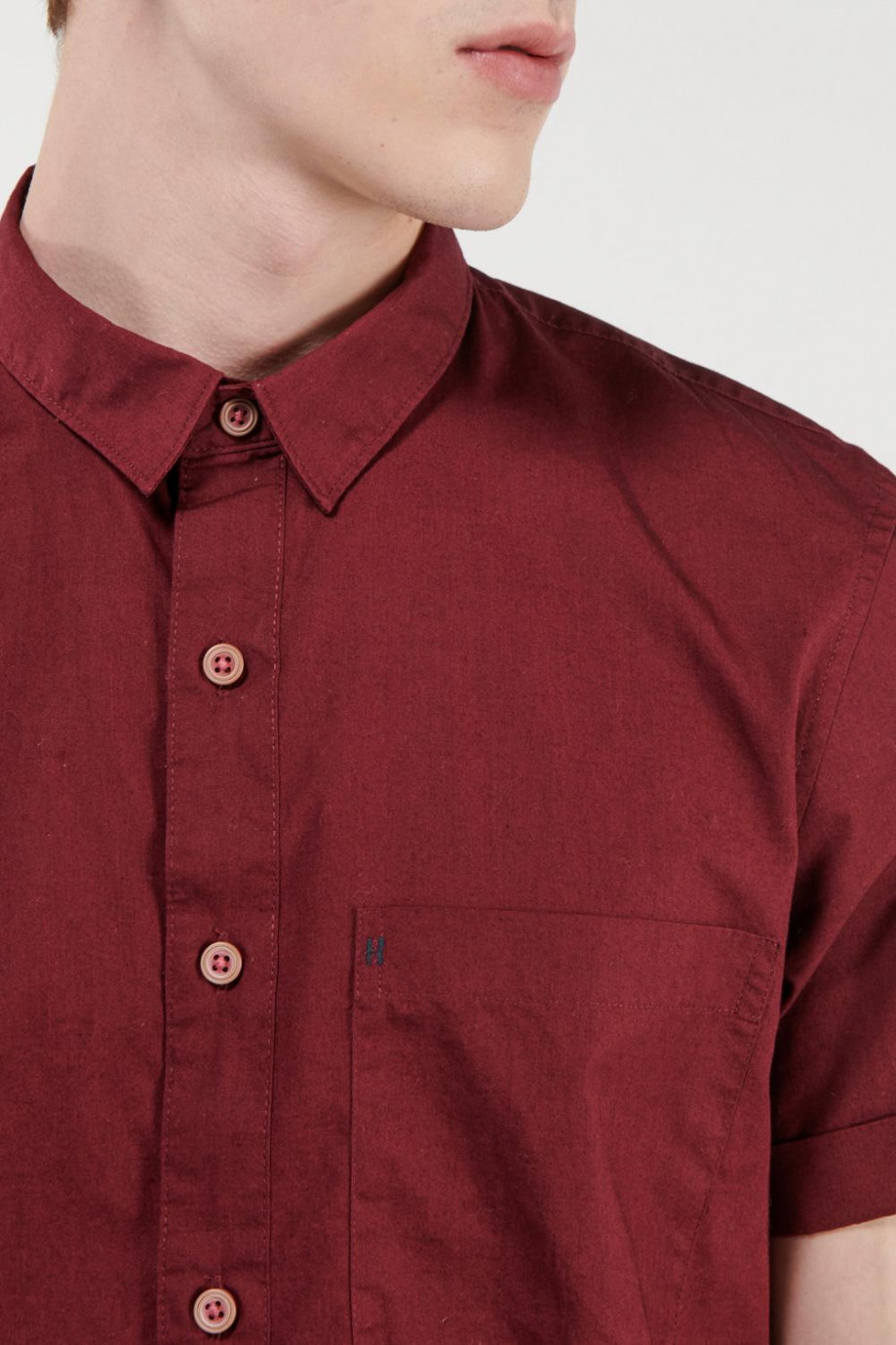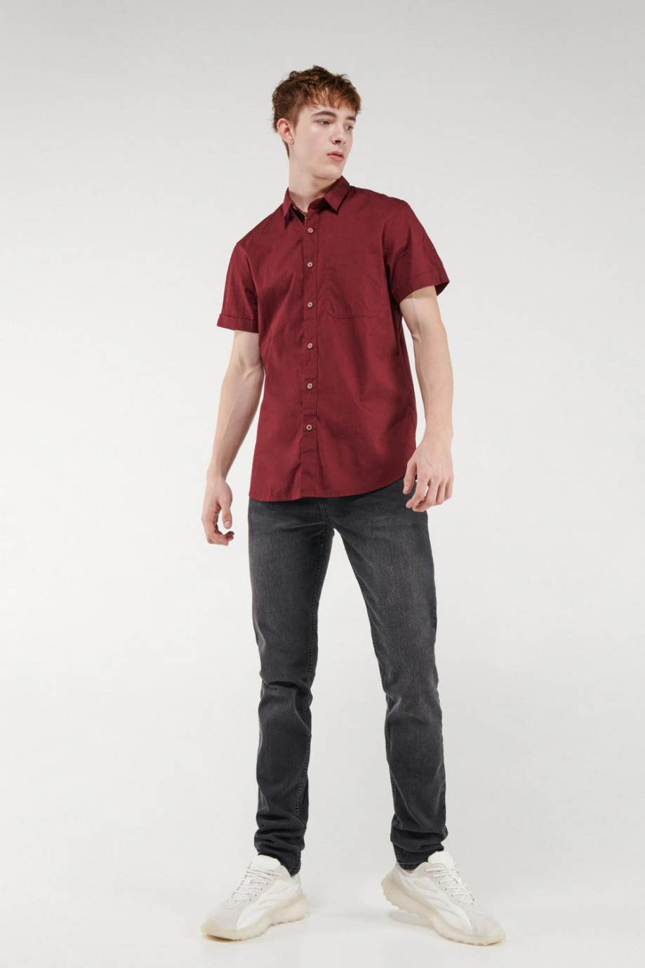 Camisa para hombre, en tela unicolor, cuello sport con bolsillo en frente