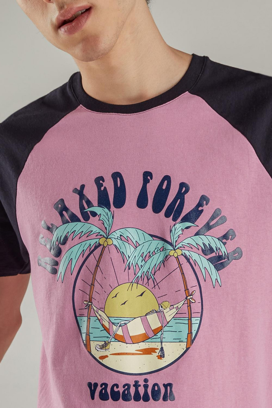 Camiseta para hombre, manga ranglan corta en color contraste, estampado minimalista en frente.