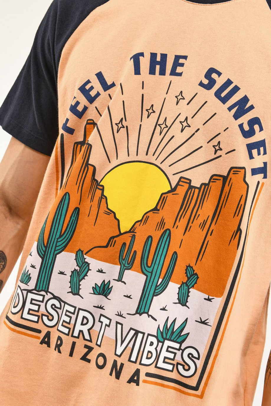 Camiseta para hombre, manga ranglan corta en color contraste, estampado minimalista en frente.