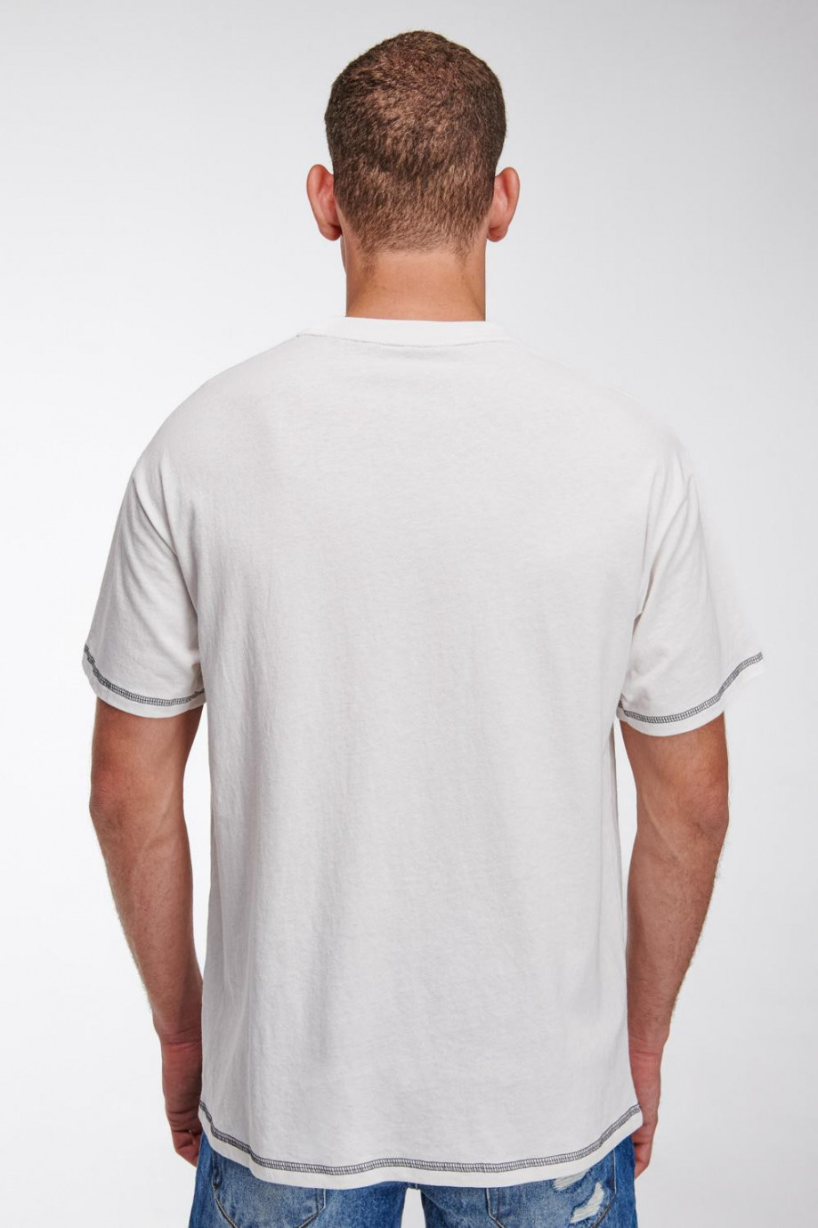 Camiseta, para hombre, manga corta, cuello redondo con estampado localizado en frente, costuras en contraste.