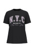 Camiseta para mujer, en tela de cuerpo unicolor, estampado frontal de Minnie Mouse en contraste, cuello redondo en contraste y manga corta.